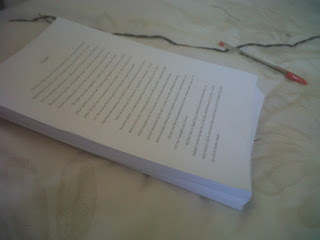 I so seriously need to get a less sucky title for this novel, but jawellnofine, I finished the manuscript in the wee hours last night. Mainly in a fit of pique. See the pretty picture? That's all 189 pages printed out and the happy new red pen I bought to do the job. Our plucky griffin, Silas, will undergo the red pen. I'm trying something a little different with this novel and printing out the pages so  feel more inclined to edit the living hell out of the manuscript.Oh, and yeah, I have to have this ready by January 14 since I'll be entering this into ABNA next year. 'Cos that's just the way I roll. Current state of the MS stands at 55 000 words. It will be interesting to see what it's going to look like once I'm done.