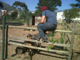 Being a photographer means not being averse to heights.HJ is also someone who's always up for a challenge, and let me tell you, getting a goat to stand still long enough to get close enough to take a photo of its eye is... It's fun. To put it mildly.But we got a bunch of goat pics, and there are a few that look like they'll be do-able. I'll be posting updates as I go along, because I think it's quite cool to show how the process works. My next step will be to run the raw thumbnail images past the author then chat to him with regard to the colour scheme.