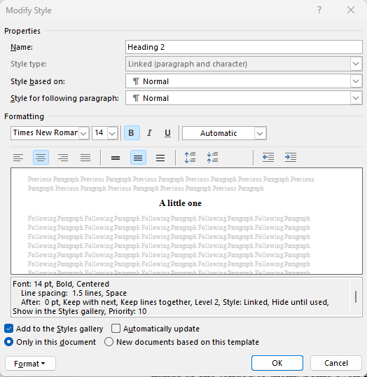 You can set it for only this document or if you want to use it for other similar documents, you can select at the bottom ‘New documents based on this template’ before clicking on ‘OK’.
