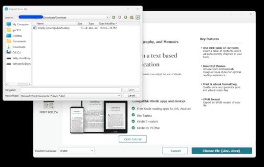 KDP will ask you to upload the kpf. file – get it ready as I will see you in the next post!