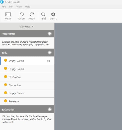 The previous headings you created will be under ‘Body” and shown below. There’s Front, Body and Back Matter.