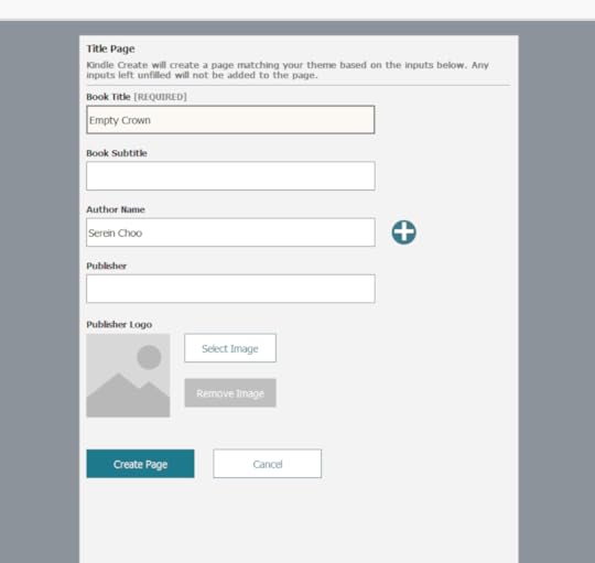 if there’s a series then you will have to fill in the details here but since Empty Crown is just a single/solo book, I just ignore that part and the edition as well since this is the first edition.