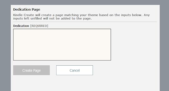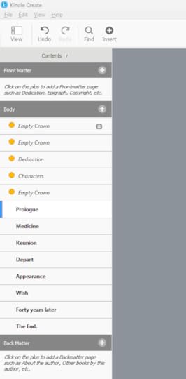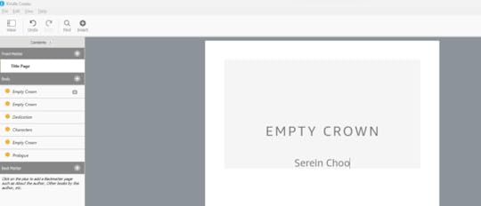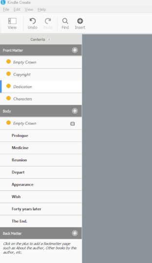 I tried using the ‘Front Matter’, to create a title page, dedication but it looks weird so in the end I leave out the ‘Front Matter’ as it seems and felt strange to me.