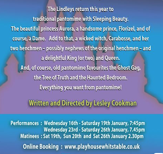 Well, that's done. In many ways, it was the worst three months of my life, and certainly almost ruined the children's Christmas. Younger son and elder daughter (the one with two children) refused to come and see it because it had made my life such a misery. However, elder son and girlfriend did come and see it, and loved it. The cast - dragged in, some of them - delivered a very enjoyable final product. Not sure I had anything to do with it...