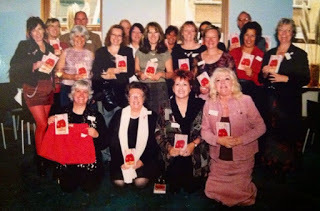 (That's us in the front row on our knees, me in pink, and Hazel next to contributors and friends Sophie Weston and Caroline Mackworth-Praed.) My husband is also there at the back somewhere, as he designed the cover, which became the trademark of the Sexy Shorts collection. We also had a Welsh launch at the National Library of Wales at Aberystwyth and other events in bookshops all over the place.