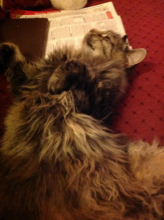 Last Tuesday, 1st November, I went to lunch and the theatre to see The Woman In Black with some friends. Thoroughly enjoyed myself, and it was just as well. That evening, on my way to bed, I was trying to shut the cats into the kitchen when one of them - the naughtier one, Lady Godiva - decided to have a game of hide and seek. Now both my sons have said since "How can you fall over a cat?" I put it to every cat owner I know: "How CAN'T you?"