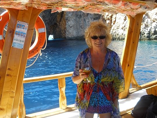 I have just got back from Adrasan in Turkey once again, but as the person I travel with fell on the first morning and, it turns out, cracked her ankle, I spent most of the time around the hotel, except when my other friends kidnapped me to go on boat trips. This is me on one of them.