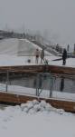 While I was doing a fair impression of the Michelin Man in puffer, gortex jacket and four layers of clothes, hardy locals were showing we Aussies just how soft we really are – by stripping down to their budgie smugglers for a quick dip in the ice-trapped local pool.