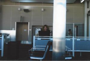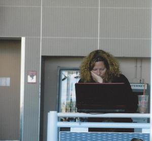 A little bit of the behind the scenes on ELF SHOES.….The submission call for holiday stories went out in August. I was just on my way back from my Grandpa’s Memorial and glad to have some fun work to do on the long plane ride back to the Pacific Northwest. I started writing the story in the St Louis airport while we were waiting for our plane. We arrived early to the airport and our plane was really, really, really late. So, I had lots of time. My Mom snapped a few photos of the writer at work. Here I am, working on ELF SHOES. If you look very closely, you will see a Tornado sign behind me. The St. Louis airport was hit by a tornado a couple years ago, and these signs direct people to places such as the bathrooms in case of a tornado. I grew up in St. Louis and I’m pretty sure these signs are new! Also included in this picture is the large, large iced mocha. I’m a bit of a coffee addict–it has to be all the coffee stands in the Seattle area…..but most of the time, my coffee is not this large!