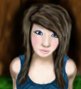 First, I read the story. Then I listen to what the author wants, (Ann T Bugg is the pen name for Valerie's Mom, June Kramin) write it down, lose the note, and just wing it. The most important stage is finding music. Without music I cannot draw. I make tons of sketches, like if you took all of them and put them end to end, you could probably make a bridge to the moon. The only thing is that I usually throw them all out, but eventually I sketch one I like. And finally, the painting. I use Photoshop and my drawing pad to paint, and that allows me to paint lots and lots of layers (to make it more realistic). So for about a week or so I do nothing but make careful brushstrokes and smudge it to try to make it look more like a picture than a drawing.
