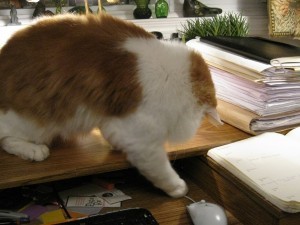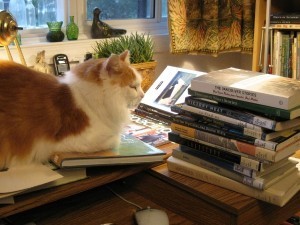 I remember the period that preceded this accumulation of debris. I remember who I was, then. I remember spending whole mornings researching forgotten writers and obscure books, laying out chapters, dabbling with words, before biking all over the city visiting second-hand bookstores on a perennial search for forgotten Toronto novels. My files were always neat then. I remember the November day in 2006 when I moved my desk so it would face toward the window and I could look out into the cedars and peer at the houses beyond them. A cat — another cat whose ashes have since enriched the front garden — would lie in the window and watch the little birds, and together we would talk about the weather and the shifting angle of the light.