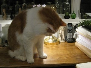 My desk is clear, now, except for three files, a cat, those precious stones and my daughter's plastic unicorn.