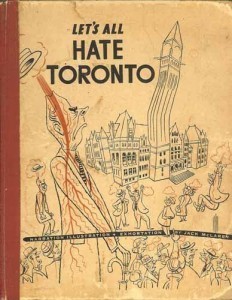 [Images: Albert Nerenberg and Rob Spence's 2007 documentary, Let's All Hate Toronto; and Jack McLaren's illustrated 1956 satire of the same title. Readers interested in literary Toronto-bashing should also check out Lister Sinclair's 1948 radio play "We All Hate Toronto." Chapter 1 of Imagining Toronto references numerous other examples of Toronto-bashing -- including insults published in the city's own literature.]
