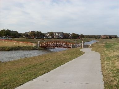 I did eventually drag myself out of the house to take my hike/walk, and I'm glad I did because it was pretty much a perfect day. I discovered that they've created a new way to get to the trails along the river from my neighborhood, and that makes it much easier to get there. There's a kind of canal/lake down the side of the neighborhood, and then the levee, and then the river basin where the park is. Before, the only way to get to the park was to go to around the lake, so it was about 40 minutes of walking from my house to get to the park to then start the walk in the woods. Now they've built a bridge from the middle of the neighborhood, at the end of the walking path that runs by the library, so I can get all the way to the park without walking along or crossing surface streets, and it's only about five to ten minutes beyond the library (I didn't time it, but that's what it felt like).