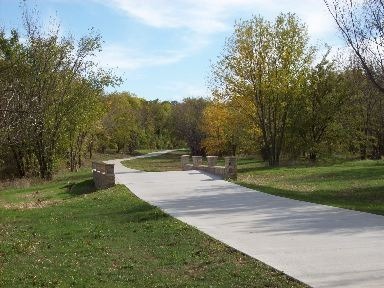 And then you follow the path (it sort of seems like it should be made of yellow bricks) down the other side of the levee, and it feels like the "real" world disappears as you enter this new world and follow the path into the woods:
