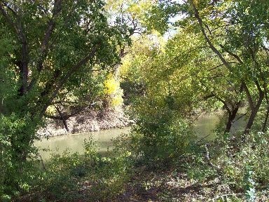 The path stays mostly away from the river (probably because the river tends to flood), but there are spots where you can glimpse it between the trees: