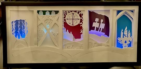 First, is this amazing piece of paper art created by Makelle B. Each compartment features a different book in the series and all of them light up, which is absolutely stunning in person.