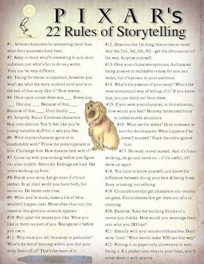 A couple of weeks ago, Pixar storyboard artist, Emma Coats (@lawnrocket) began tweeting some of the "rules" she has gleaned from her years of working for the studio. The rules were turned into the poster I show above.