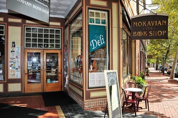 Trasladándonos al otro lado del Atlántico podemos encontrar Moravian Book Shop, en Pennsylvania, de 1745. La más antigua de América, donde los estudiantes van a comprar lo necesario.