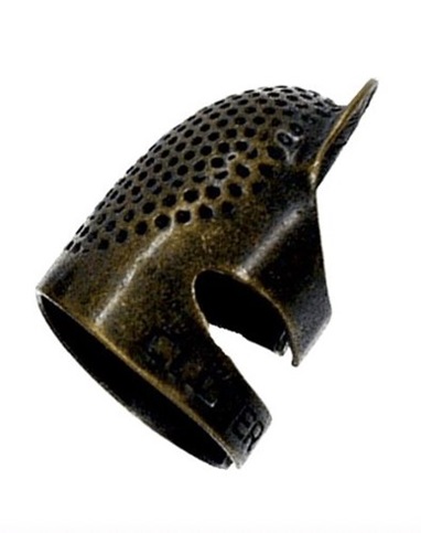 No todos los dedales tienen forma de cúpula, también los hay abiertos, como podéis ver en la foto, cubriendo solo la yema del dedo.