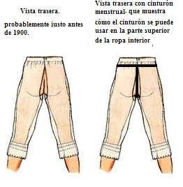 Un hombre de Chicago diseñó, aunque no llegó a fabricarse, una especie de copa menstrual unido al extremo de un alambre (¡solo un hombre podía diseñar algo así!) la cual a su vez estaba conectada a un cinturón alrededor de la cintura de la mujer.Llegados al siglo XX la ropa empezó a ser más ligera, por lo que ya no era necesaria la abertura en la ropa interior pues no resultaba incómodo bajarla y los calzones podrían entonces cumplir con su función de ocultar y cubrir los genitales. Pero seguían siendo de pierna ancha y larga hasta mediados de 1930.