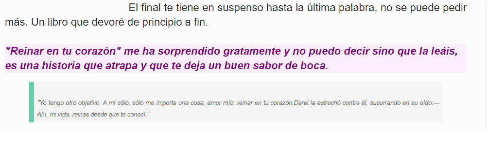Una bonita rese��a de Reinar en tu coraz��n