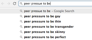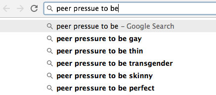 Let's play a quick game: go to Google, type in "peer pressure to be", and see how it autocompletes the phrase. Here's what I found: