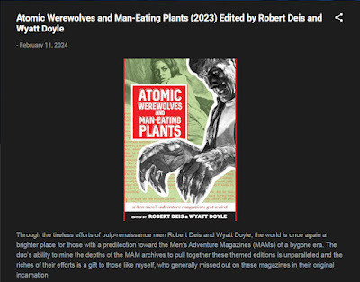 Edited by Robert Deis and Wyatt Doyle, Atomic Werewolves and Man-Eating Plants is part of the Men's Adventure Library series, and is available now in softcover and as an expanded hardcover with bonus material. Buy it HERE.