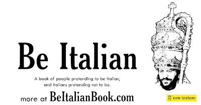 Over a year in the making, Be Italian is the new release from Jimmy Angelina and Wyatt Doyle. It is a book of people pretending to be Italian, and Italians pretending not to be. It is not a coloring book. (But if you want to color your copy? Hey, it's your book. Have a ball, baby.)