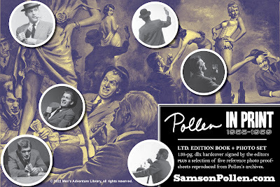 Pollen In Print will be a 138-page 11” x 8.5” deluxe hardcover, and will shelve perfectly with our prior Pollen collections, Pollen's Action and Pollen's Women. The insights and revelations to be gleaned from this complete, chronological approach of the Pollen In Print series are significant, both in terms of bringing to light “lost” or long-unseen works, as well as at last being able to truly and accurately chart Pollen’s progress and evolution as an artist and illustrator.