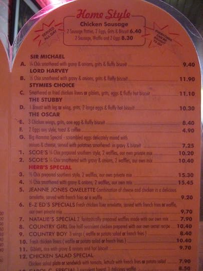 Photo carelessly chops the bottom off of the old standby, the Carol C Special ("1 succulent breast, 1 delicious waffle"), one of the menu's mainstays.
