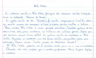 Numa visita à EBI da Azambuja fui presenteada com uma redacção muito especial feita pela Cátia Silva, n.4 do 6.º B, em resposta ao desafio de escrever sobre alguém que ela admirava..