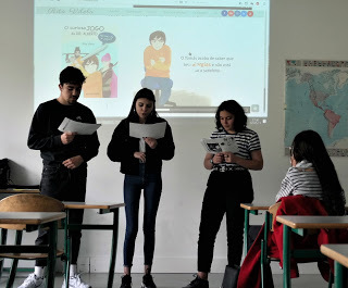 Seguiu-se a apresentação dos trabalhos pelos alunos, numa dinâmica muito engraçada. Primeiro uma turma...