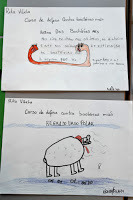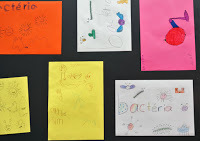 Os alunos já tinham trabalhado com as professoras a obra Curso de defesa contra bactérias más e os resultados, bem engraçados, estavam à vista