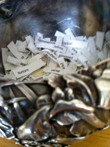 Other tricks: I have words that I have forgotten, igonored in a bowl. I notice them once again in something I’ve read, write them down, and put them in a bowl. Occasionally, I pick one out to flutter (see, that was one…) into my prose.