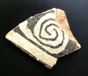 They know me and my interest in archeology, which comes from the love of Egyptology and having been on several digs in the American southwest. There I dug in a midden—a garbage pit—beside the ruin of crumbling adobe bricks. I had a sense of the people who lived there, the walls they walked between, the doors they entered, the kiva where they performed rituals and prayers. My most exciting find was a potshard with a fingerprint. I placed my finger over the small print, the whirls still embossed by the clay. I imagined the woman who made the bowl sitting in the same spot, seeing the same desert, the far away mesa, the unbelievably blue sky, and felt her presence, this woman from a thousand years ago. Before they knew that the white man and white diseases existed.