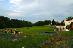 We kneel on kneepads, and scrape away topsoil, struggling against roots. As the day heats and the sun rises, we set up tents to shade us. It is a cooler week in Virginia than it is in Michigan; the arch warnings about the heat and blasting sun have been in vain. We scoop the dirt into dustpans and pour it into buckets, carry them to the screening house, shake the dirt through a ¼ inch mesh hardware cloth, examine the stuff that doesn’t go through the screen. It’s mostly bulbs like a wild onion and pebbles. We do that for 4 hours.
