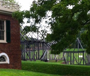 Archeology played a crucial role in the restoration of the mansion of Montpelier now returned to its glory when Madison was president. Domestic slaves lived near the mansion; archeologists uncovered the size and form of their dwelling close to a kitchen, as well as two smoke houses. Frames waiting for funds to fully restore them illustrate their size and location. Two enslaved families lived in a duplex that was 16 X 20.