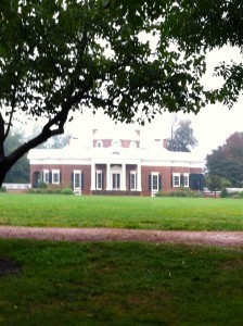 The next day, we visit Thomas Jefferson’s mansion, Monticello. Jefferson’s relentless curiosity, constant inventions as well as his timeless artistic sensibility are apparent everywhere. Indian history robes from the plains, European art, bones of mastodons, crazy clocks that tell the time and the day of the week by intricate weights, a set of French doors that both close when one closes, a polygraph that automatically copies what he writes. His bed is between his library and his writing room; from it, he can he gaze through a series of French doors into the garden. He figured out how to have indoor privies and improved plants with his knowledge of botany. All this. And of course the Declaration of Independence and his supreme belief in science and rationality as a way to make life better. All men are created equal and have the right to life, liberty and the pursuit of happiness. In his day, all men meant white males who owned property.