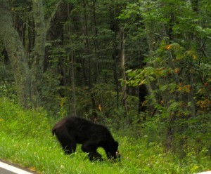 On the way down the mountains, a baby black bear walks beside the road. An eagle soars next to us.