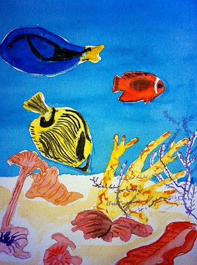 While there , I read Keith Richard’s Life fascinated by his lifelong musical passion, and creating as a collaboration—rare in visual art or writing. He and Jagger actually invented together, spontaneously, experiencing that moment of awe simultaneously. I did something different. I painted a coral reef to Jumping Jack Flash, Love in Vain, Little Red Rooster, Brown Sugar. I have a lot of Rolling Stones on my ipod and just let it roll, enveloped by the bright colors of the fish, and the coral, the music.