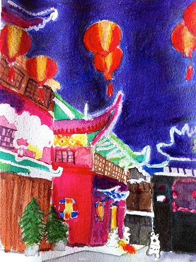 Then, there was L.A.’s Chinatown: red lanterns throwing an orange glow, neon lights highlighting ornate gingerbread. Perfect for rap. So I put in the earphones and painted to old school Tupac, I ain’t Mad at Cha, Dear Mama, Life Goes On and Lil Wayne’s President Carter.