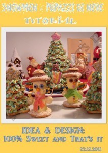 The next week, she was asked by an Italian Blog to write for them. Carola wondered if she should because she is “just a mom at home baking and they are professional cake designers.” I encouraged her, telling her stories about success that start from home, and that the line between ‘amateur’ and ‘professional’ is sometimes only in the degree, not the effect. So she stacked graduated baked stars glued together with icing into gorgeous Christmas trees festooned with garlands, candies and tiny Teddy Bears. She made a battalion of snowmen surrounding the tree.