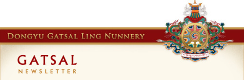 Please click here to view our latest newsletter "Gatsal". In this issue, adorned by a beautiful image of Maha Prajapati Gautami, the first Buddhist nun, as depicted in one of our Temple murals, Jetsunma Tenzin Palmo offers her regular update on the happenings at DGL. There is a report on her very successful visit to New York in June which included the launch of her new book, Into the Heart of Life. Features on the DGL nuns include a profile of one of our nuns, Ani Lobsang Dolma, other articles include visits to His Holiness the Karmapa's Temple and the younger nuns visit to a local swimming pool – for most, their first experience of swimming and their smiling faces confirm that they enjoyed the experience. The articles which are written by the nuns themselves are a very valuable opportunity for them to develop their English skills. They gain great confidence in seeing their words in print.