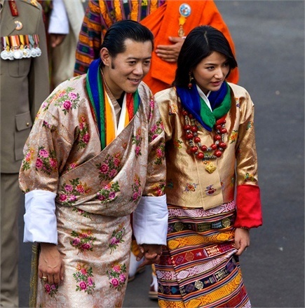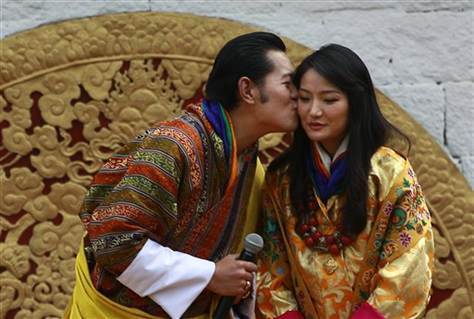 Bhutan's fifth Druk Gyalpo (Dragon King) ,just got married. With a degree in political science and economics from Oxford, the now thirty one year old King Jigme Khesar Namgyel Wangchuck, ascended the throne in 2006. A big Boston Celtics fan, Jigme married Jetsun Pena, age twenty one, this week after vowing to marry her when he was 17 and she was 7 at a family picnic. According to the King, then-prince , he got down on his knees and said "when you grow up, if I am single and not married and if you are single and not married, I would like you to be my wife, provided we still feel the same."