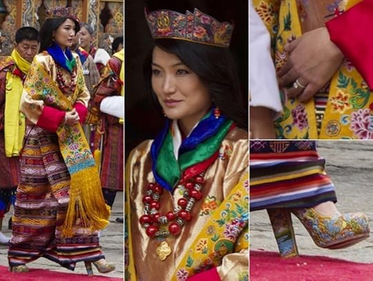 Jetsun is known for her sartorial choices already and according to Vogue IT, the couple combine their country's traditional looks with fabrics and patterns of British heritage, not to mention shoes like Church's, which the king will never give up. (vogue IT)