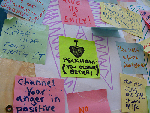 The good folks at the GNH and Positive Psychology inspired Action for Happiness in the UK weigh in on the London riots…and link to this great wall of notes publicly posted by members of one of the affected communities: