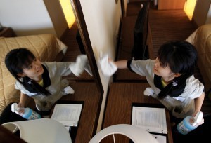 Refugee Tirtha Rai cleans rooms at the American Inn on Wednesday in Twin Falls. Rai — who landed a job more quickly than many fellow newcomers — generally works six- to eight-hour shifts at the hotel. (ASHLEY SMITH • Times-News)