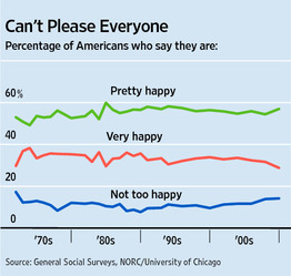 From the WSJ, this story claims that just 29% of Americans say they're "very happy." (Thanks, Aldis!)