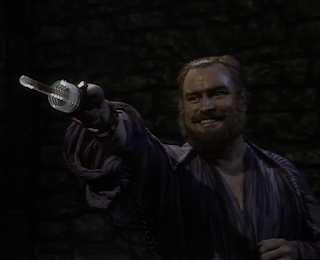 Still, the nighttime shooting (presumably in a quarry) works very well, and if you want a threatening cult leader you can’t go far wrong with Brian Blessed. The voluminous actor gives a performance of real menace as well as his trademark sonic booms, effortlessly facing off against Blake. Gareth Thomas finally starts living up to the leader mantle when he shouts some sense into Blessed’s captives, Blake’s fellow prisoners from Space Fall. By the end he has Gan and Vila in his crew. (Spot popular character actor David Ryall lurking thanklessly among the rest.)